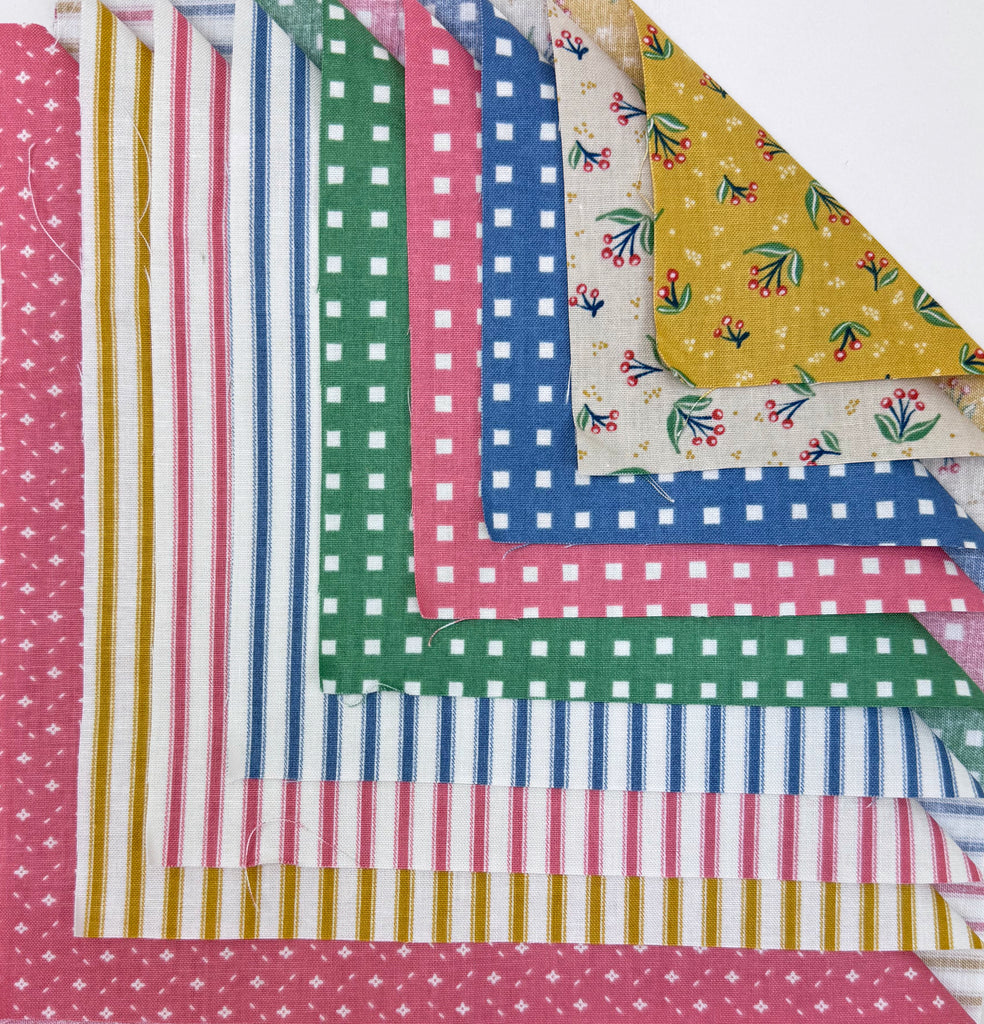 The Ebb and Flow Quilt Kit includes pattern and fabric for quilt top and binding. Backing not included. Fabric featured is Ivy Reese by Deena Rutter. Pattern is by Sandy Gervais of Pieces from My Heart. Finished size is 77" x 77". Kit comes in a solid box with a printed belly band label. Box size is approximately 11" x 12 1/4" x 3 1/2".