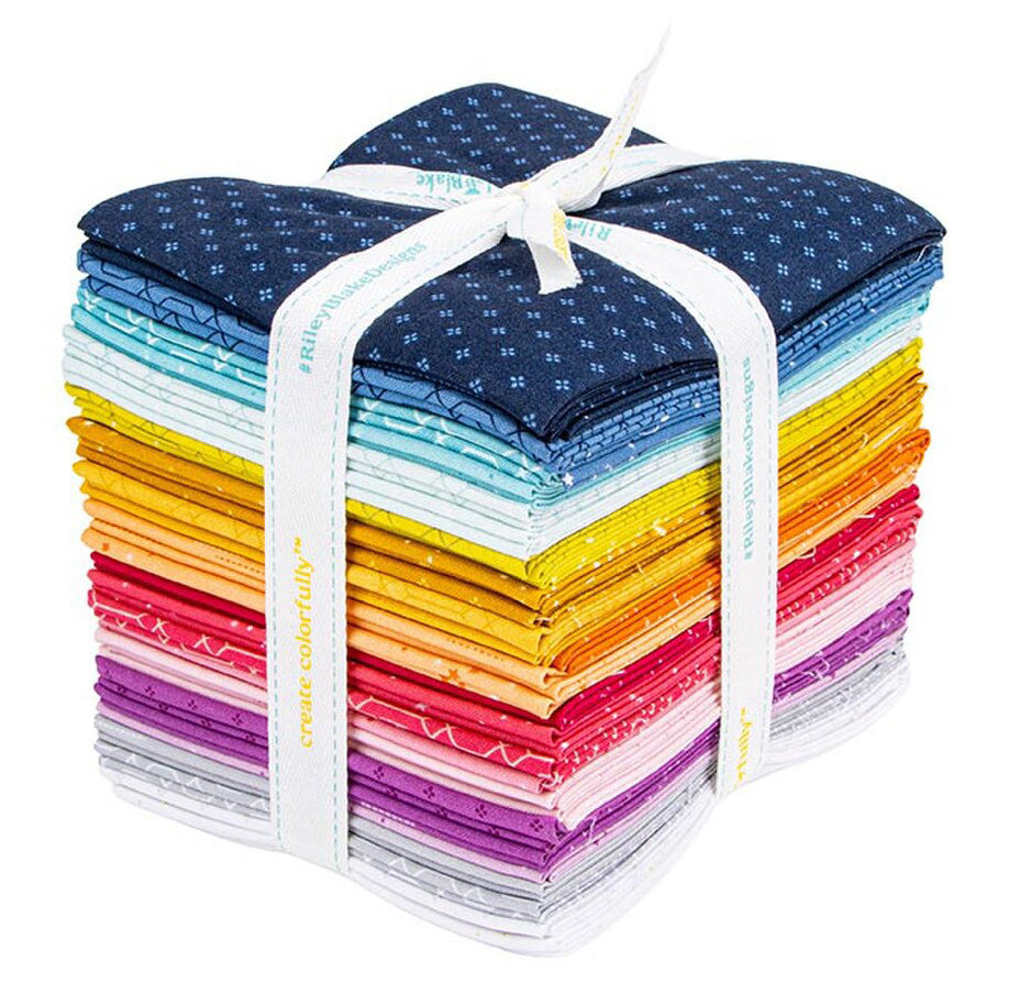This Fat Quarter Bundle includes 30 pieces from the Essence collection by Fran Gulick for Riley Blake Designs.