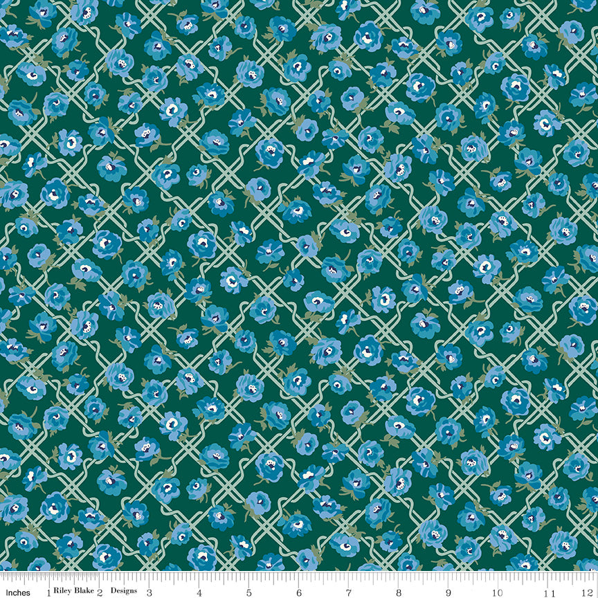 RILEY BLAKE - Floral Nostalgia by Liberty Fabrics - Rosemary Blooms - C - Blue Green