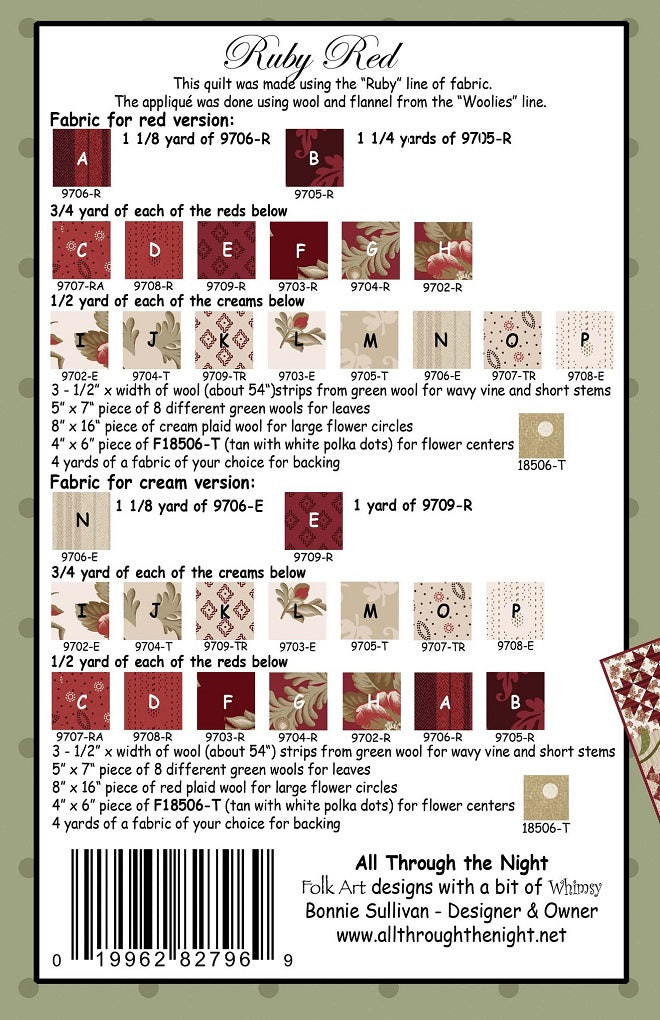Ruby Red Quilt Pattern by Bonnie Sullivan / All Through The Night