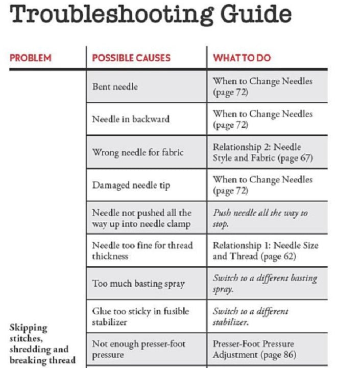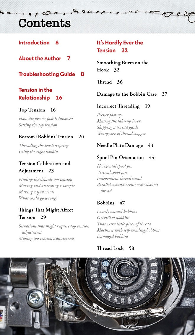 Kick tension problems to the curb and say goodbye to presser foot problems! This pocket-size guide helps you troubleshoot your sewing machine on the go. Quickly fix issues with needles, threaders, buttonholes, tension, and more.