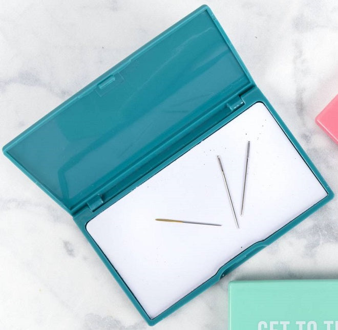 Magnetic needle case is the perfect accessory to sew on the go! Your needles will stick to the magnetic layer inside the case, protected by the sturdy plastic exterior.