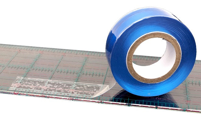 Wrap around thread spools to avoid unraveling. Thread Wrap sticks to itself, so there is no sticky residue. Place strips on acrylic rulers to reduce slippage.