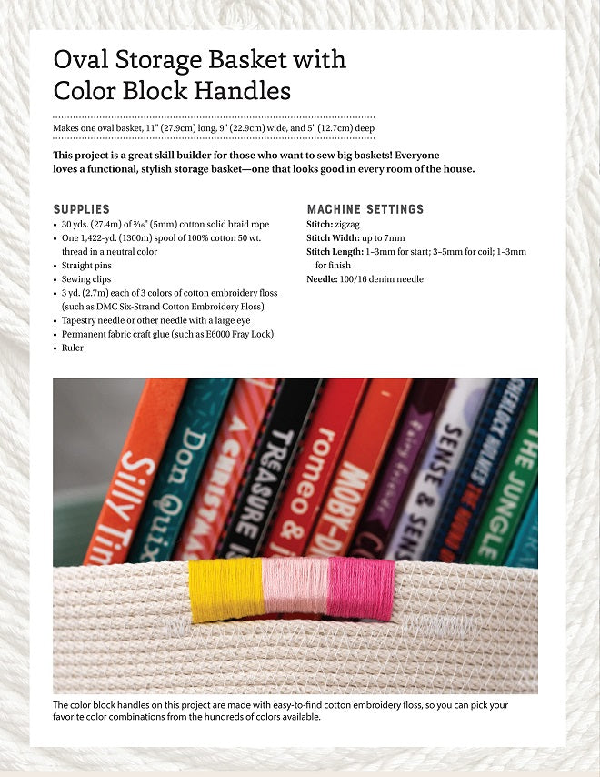 Zigzag Rope Sewing Projects is a complete craft guide to making stylish bowls, bags, trivets, baskets, and more by coiling rope and joining it together with a simple zigzag stitch! An easy and fun craft to quickly master, this exciting guide features 17 sewing projects and rope crafts with clear, step-by-step instructions, coordinating photography, and expert tips throughout that will ensure success and build your rope sewing skills. Also included are introductory overviews on the basics of sewing with rope, instructions for more advanced shaping, and tons of finishing ideas. 144 pages.