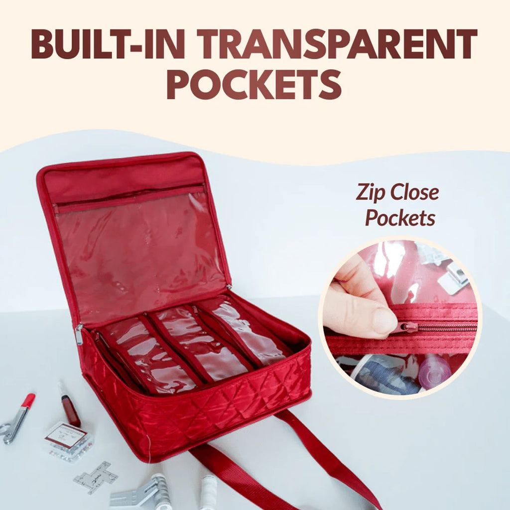 The Madam Sew Multi-pocket Binder Bag is the ultimate all-in-one storage solution for sewists, crafters, and organizers. Designed to combine the functionality of a binder and a project bag, this unique storage system features a 1” 3-ring binder for patterns and documents, along with 7 built-in transparent zip-close pockets to keep your tools, notions, and materials securely stored. Whether you’re transporting projects to a class or keeping your sewing area clutter-free, this versatile and durable binder bag is built to make organization effortless.